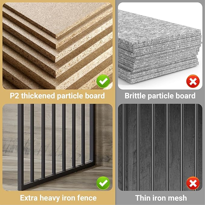 • 【Sturdy Ironwood Structure】This large indoor dog crate is made with P2 grade MDF board and and durable steel so that it’s more comfortable, durable and easier to clean compared to traditional iron dog crate.