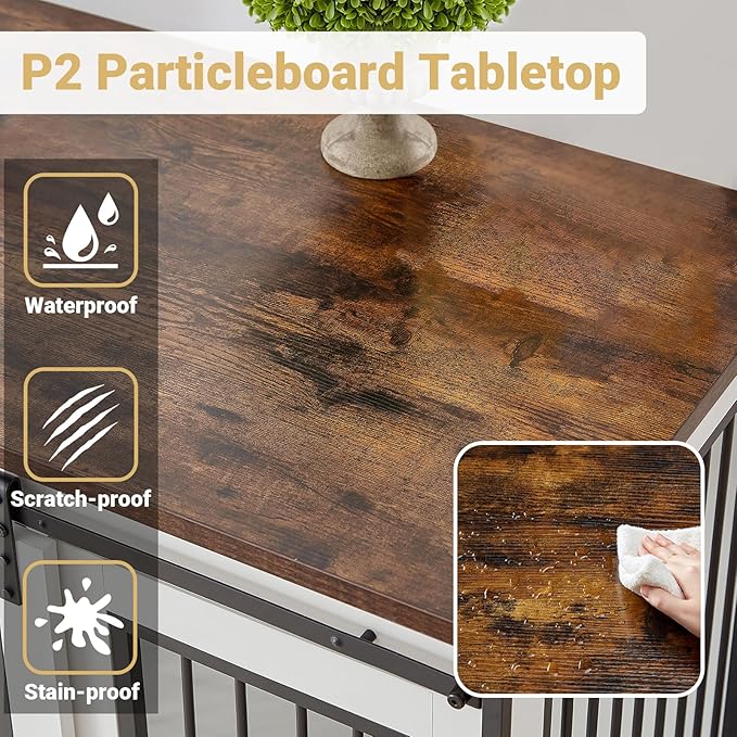 • 【Dog Crate TV Stand】With an oversized tabletop, measuring 61'' W x 23'' D, 1.26'' thick and can bear 300 pounds. It is also a TV stand.