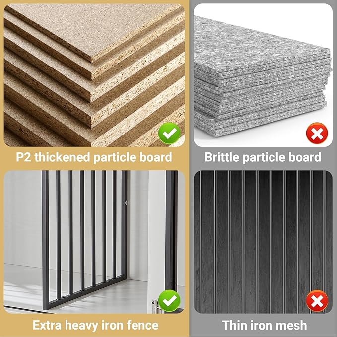 • 【Sturdy Ironwood Structure】This large indoor dog crate is made with P2 grade MDF board and and durable steel so that it’s more comfortable, durable and easier to clean compared to traditional iron dog crate.