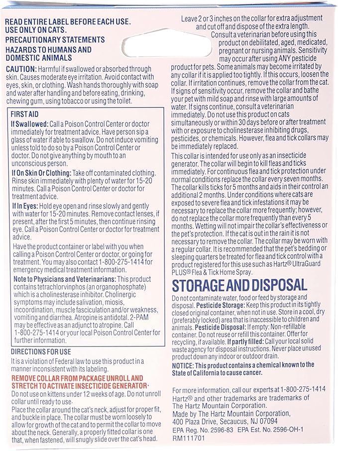 • Kills and repels fleas and ticks for 7 months. Can be worn simultaneously with your cat's regular collar
