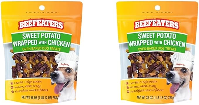 Beefeaters Dog Treats - Sweet Potato Wrapped with Chicken 28oz | Dog Food No Corn/Wheat/Soy/Gluten | Low Fat, Grain-Free, Perfect for Training & Rewards | Dog Training Treats for All Dog Sizes