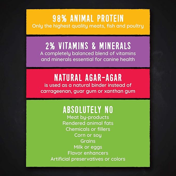 • Irresistible 98% Lamb, Chicken & Salmon wet food for dogs