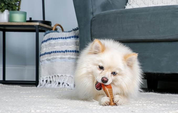 • The unique and functional drumstick shape is designed to be easy for dogs to hold with their paws and grasp in their mouth.