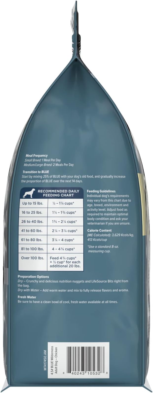 • CONTAINS: One (1) 4.5-lb bag of BLUE Wilderness Adult High-Protein Dry Dog Food with Real Chicken, Grain-Free, Made in the USA with Natural Ingredients, Chicken