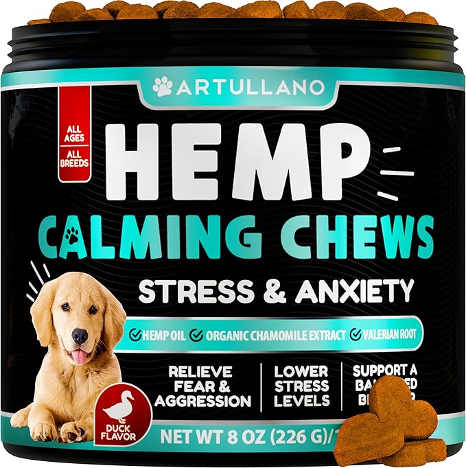 • Natural Calming Aid: dog calming chews - anxiety relief treats support help relieve your pet of any stress or anxiety using natural ingredients like passionflower, chamomile, hemp powder, hemp oil