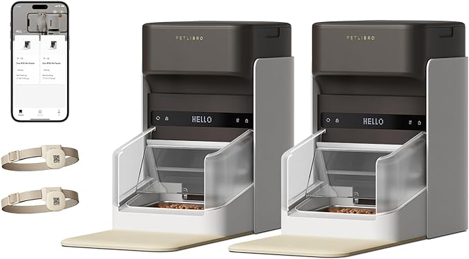 PETLIBRO 2 Packs RFID Automatic Cat Feeders, 5G Wi-Fi 2 Packs Automatic Pet Feeders, 3L 2 Auto Cat Feeders with Light Collar Tag, Tag Activated 2 Automatic Cat Food Dispensers 1-10 Meals Control