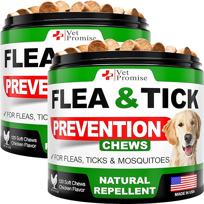 (2 Pack) Flea and Tick Prevention for Dogs Chewables - All Natural Dog Flea & Tick Control - Flea and Tick Chews for Dogs - Oral Flea Pills for Dogs Supplement - Made in USA - 240 Chews