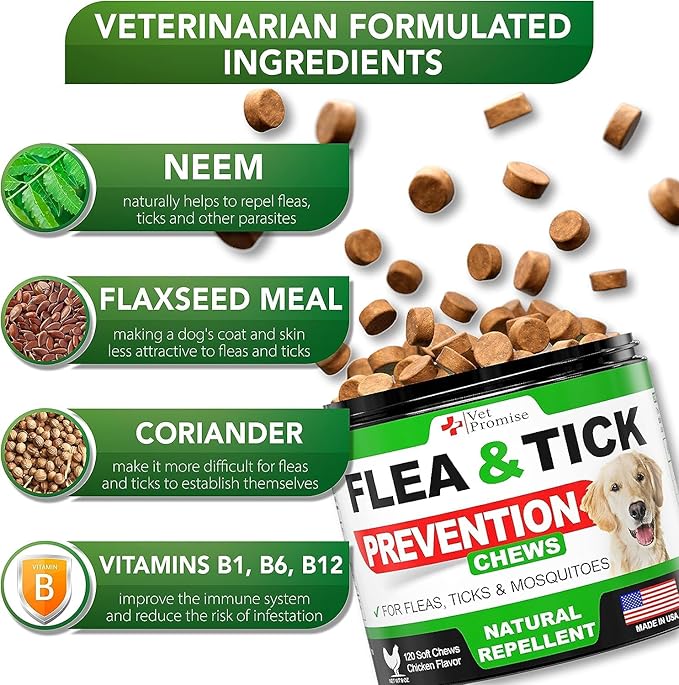 • Natural Flea And Tick Prevention For Dogs - Keep your dog safe from fleas and ticks with our supplement, using only natural ingredients to prevent pesky pests from biting your furry friend. Highest rated flea and tick medicine for dogs helps effectively protect them when given daily, building up the right levels in their system.